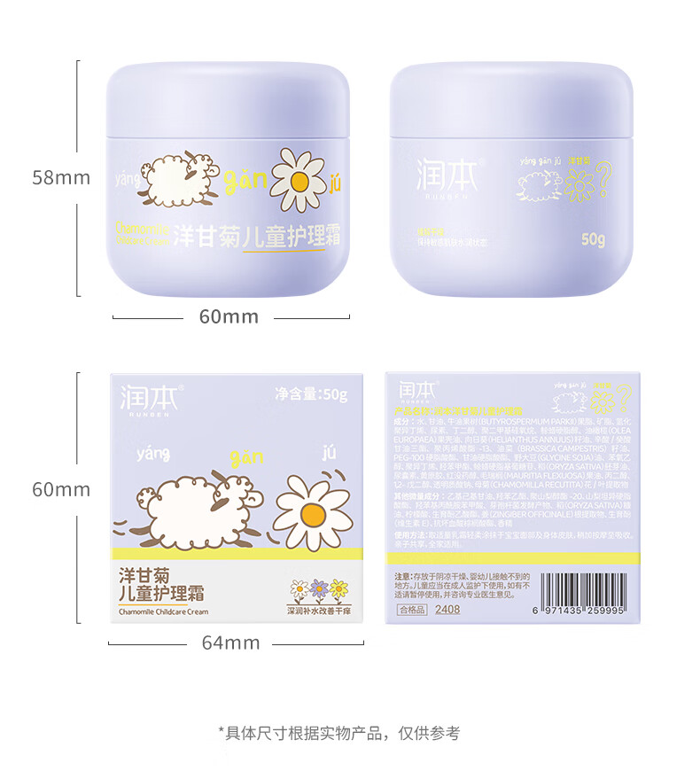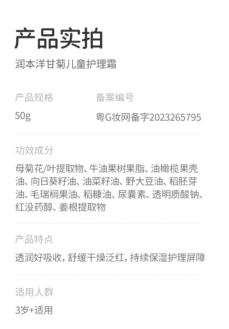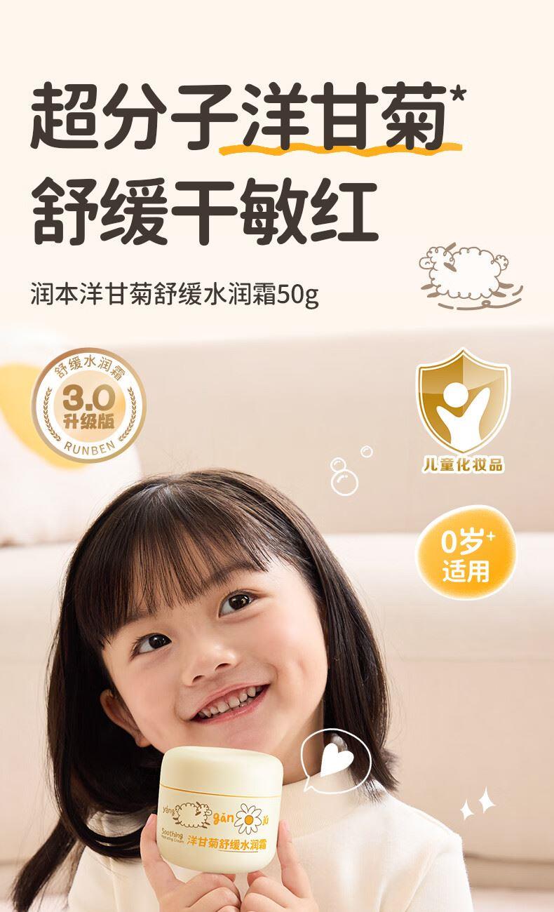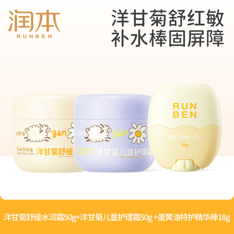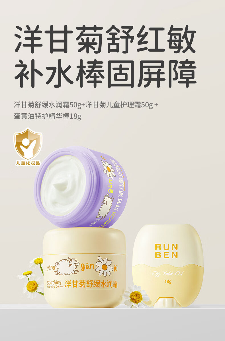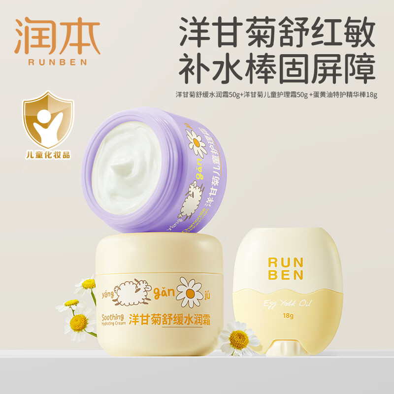 润本洋甘菊舒缓水润霜+儿童护理霜+婴童蛋黄油特护精华棒