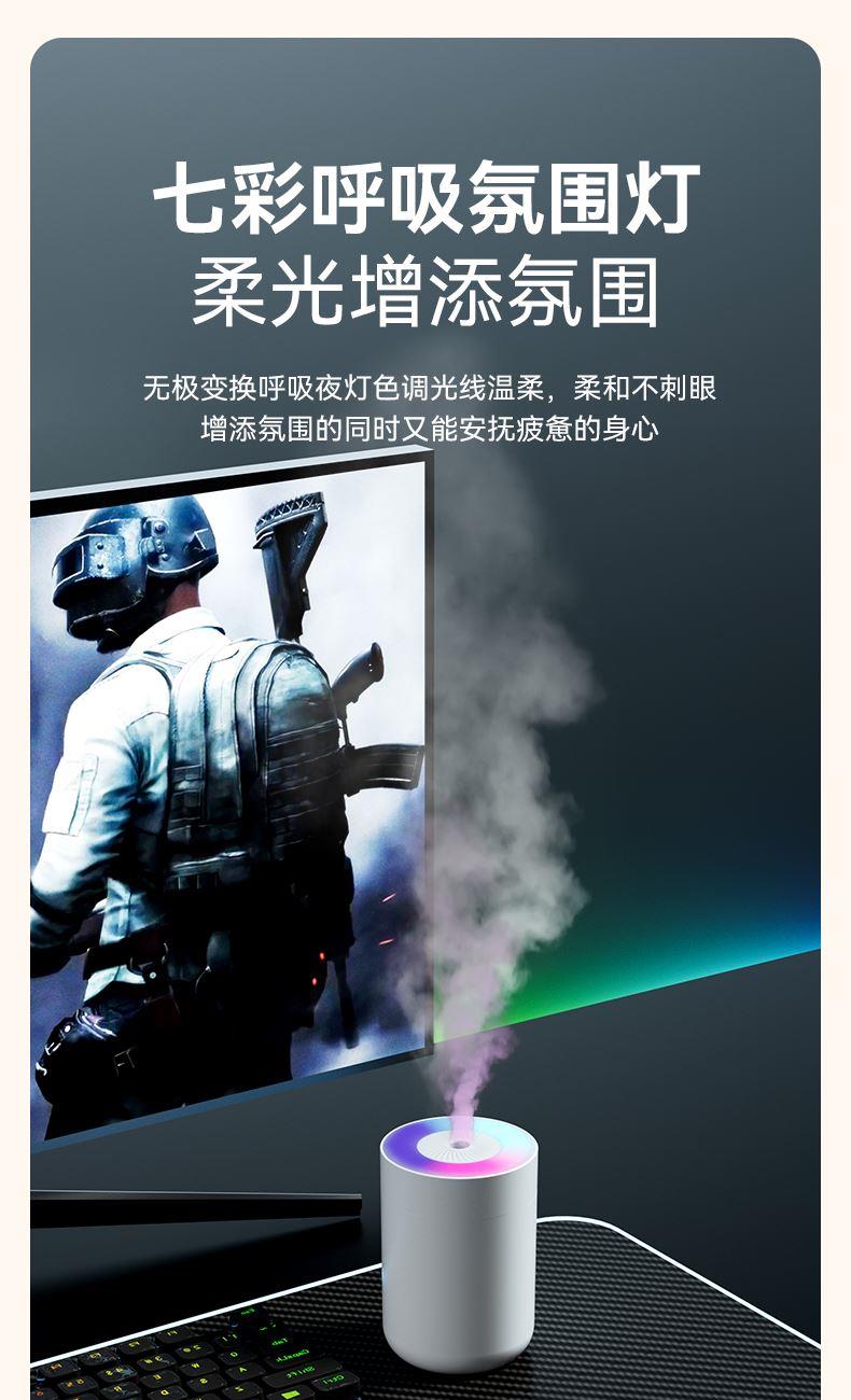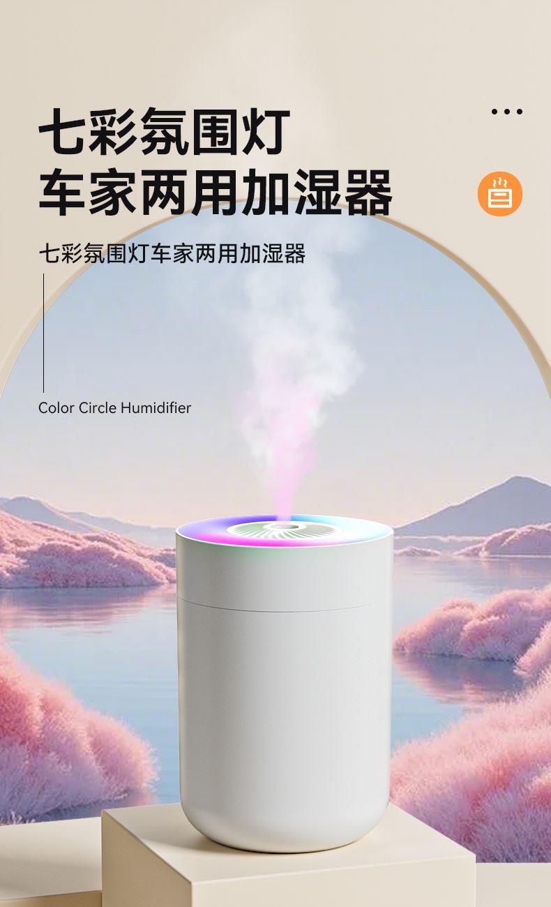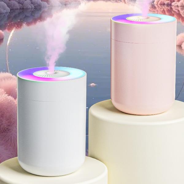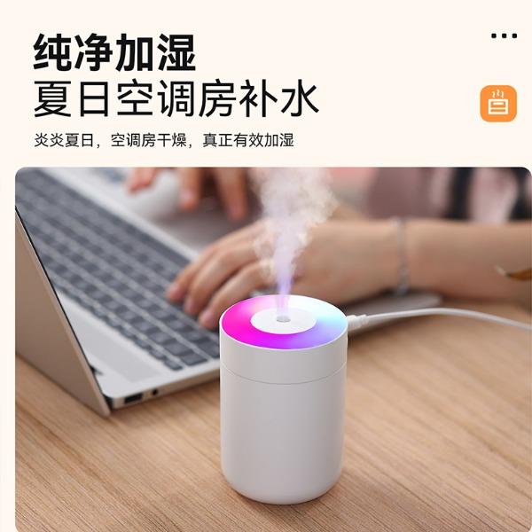 智能炫彩加湿器 型号:SZK-V20 材质:ABS+PP 额定功率:2W 输入电压:5V-1A 产品重量:85g 接口类型:USB,Type-c 产品颜色:白粉 产品尺寸: 70*70*102mm 水箱容量:230mL