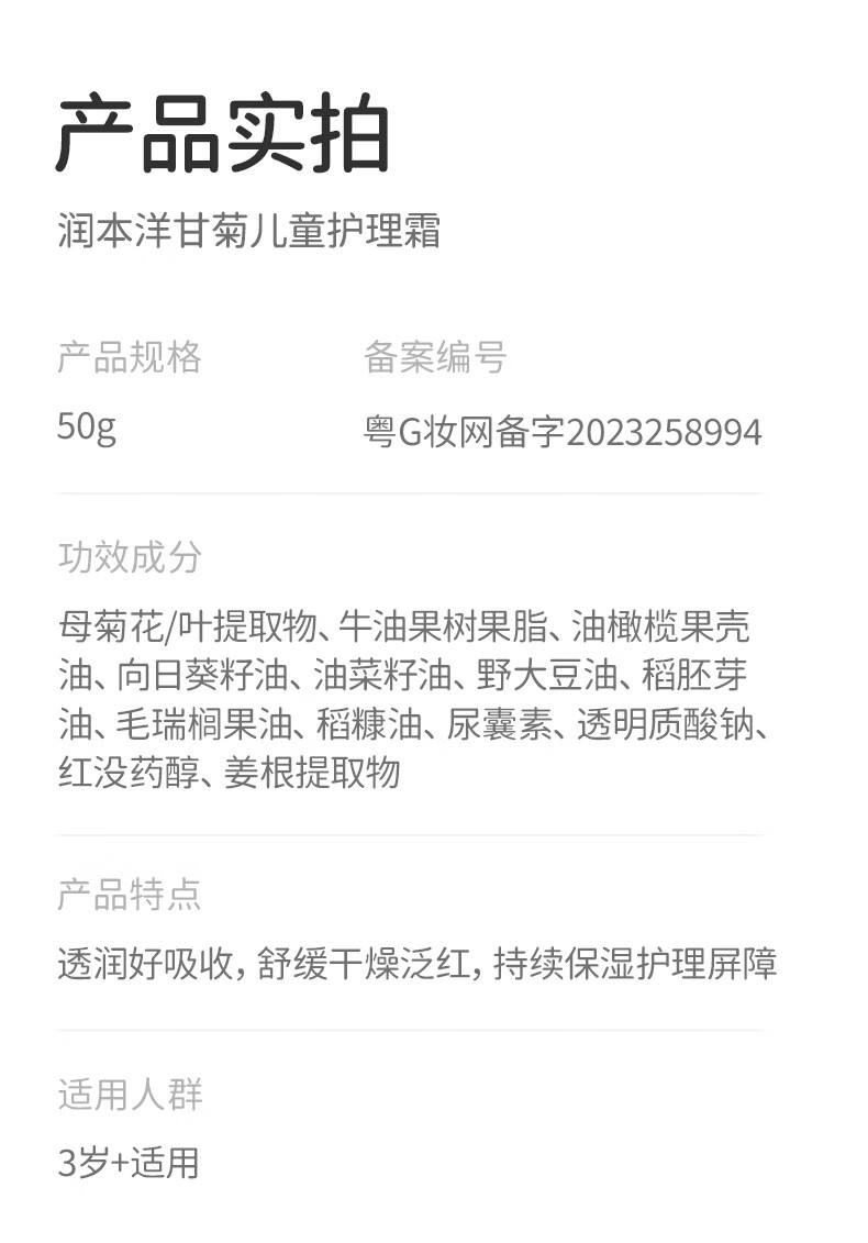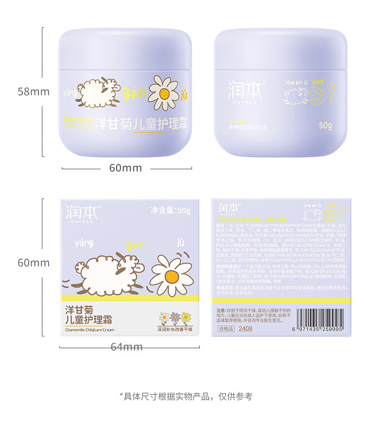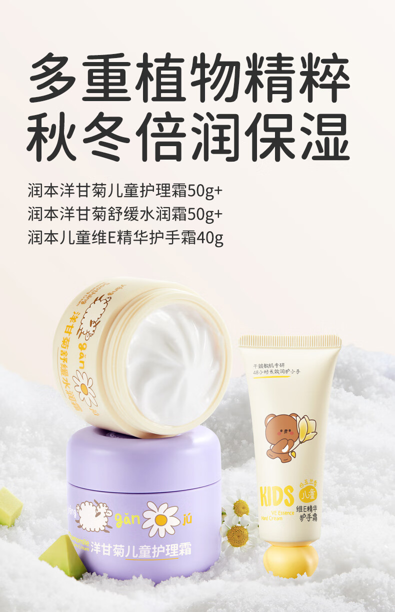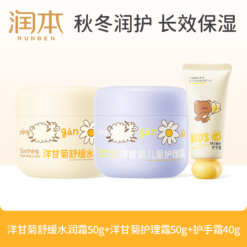 润本洋甘菊舒缓水润霜+护理霜+儿童护手霜三件套