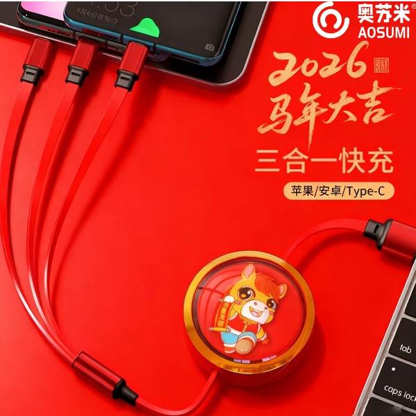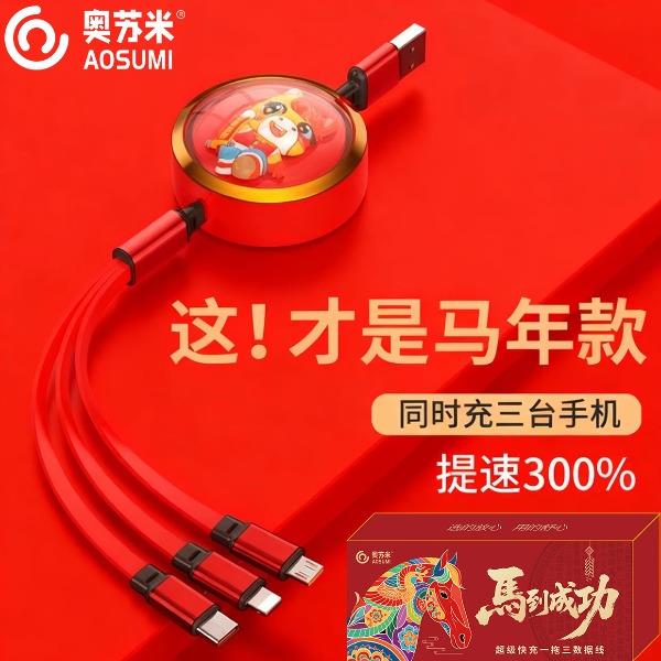 奥苏米开门红小萌马66W快充一托三伸缩数据线