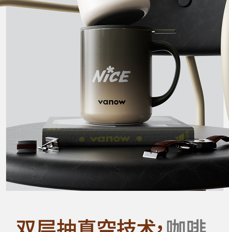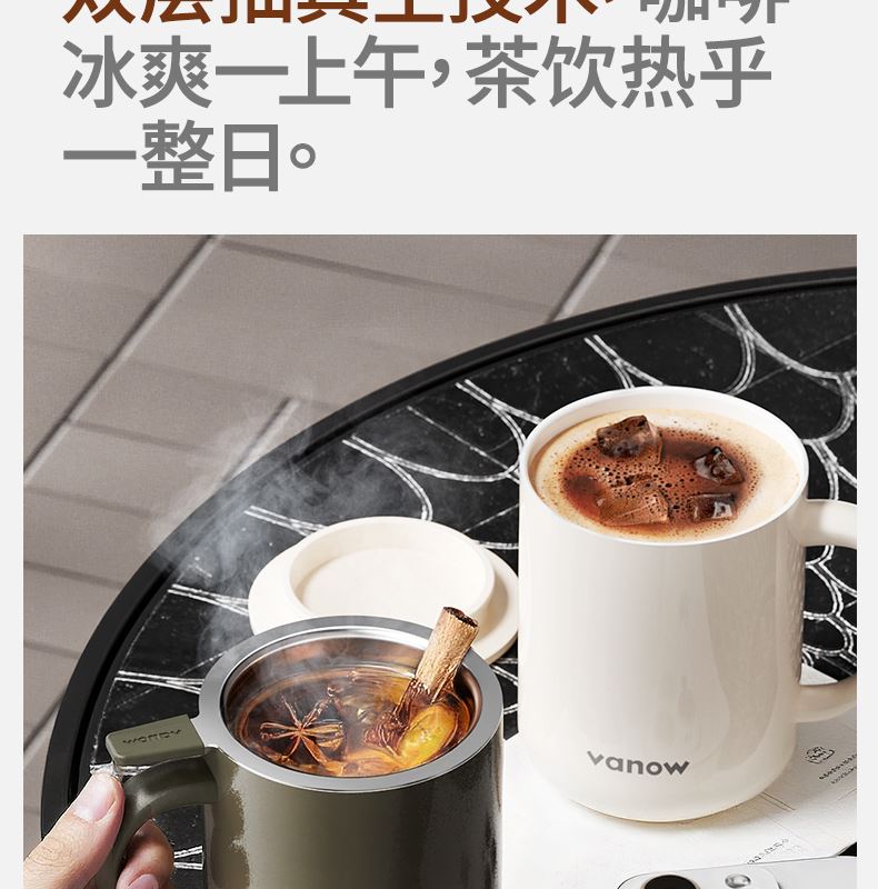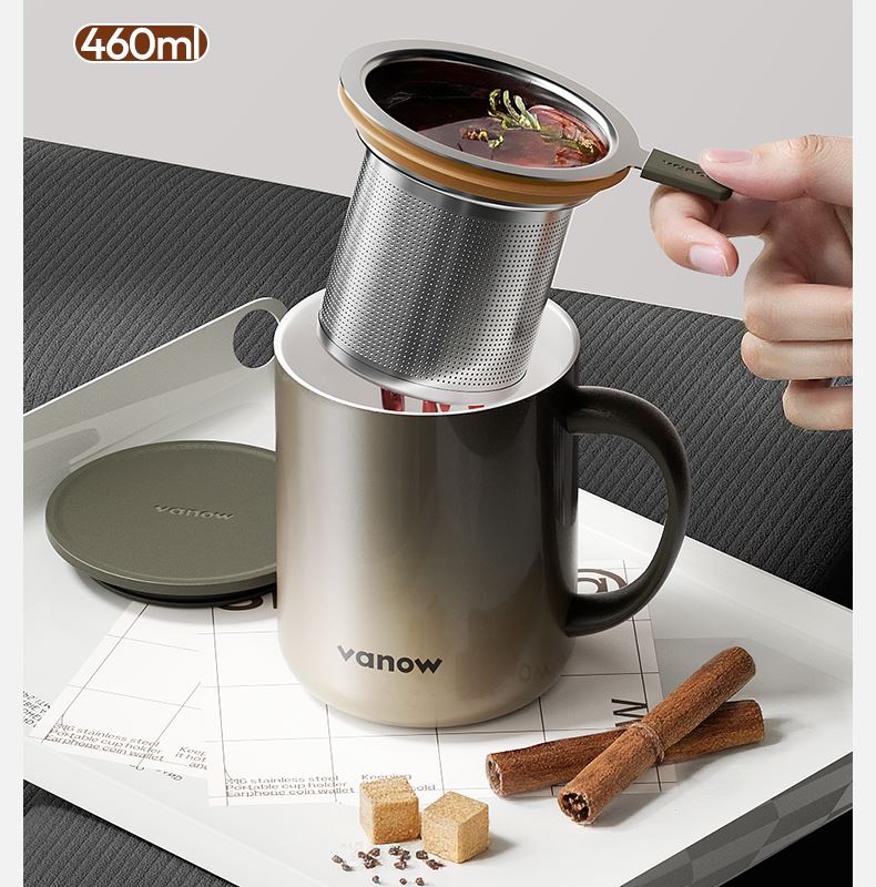Vanow简约桌面咖啡杯460ml不锈钢VO-JY46KF