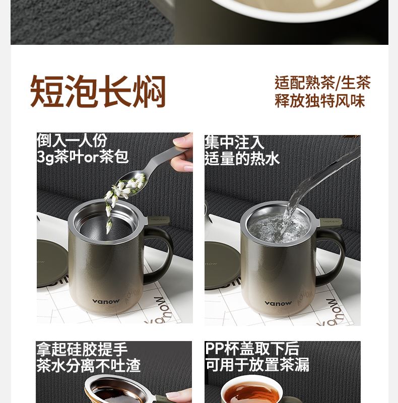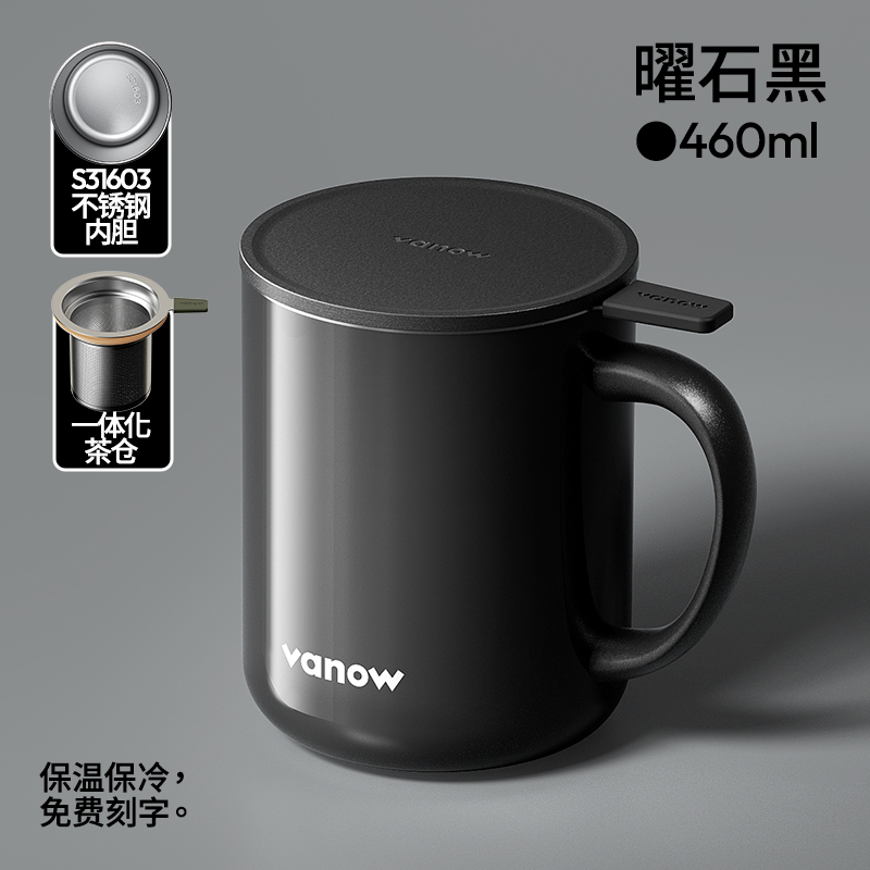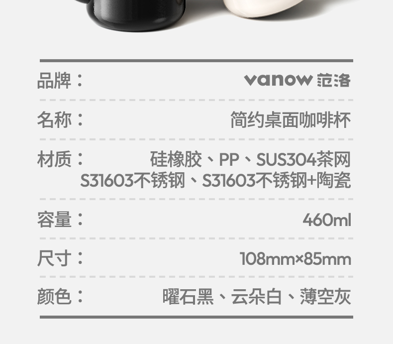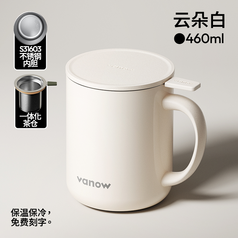 型号:VO-JY46KF 颜色:云朵白,薄空灰,曜石黑 容量:460ml 尺寸:108*85mm 材质:316不锈钢/硅橡胶/PP/SUS304茶网